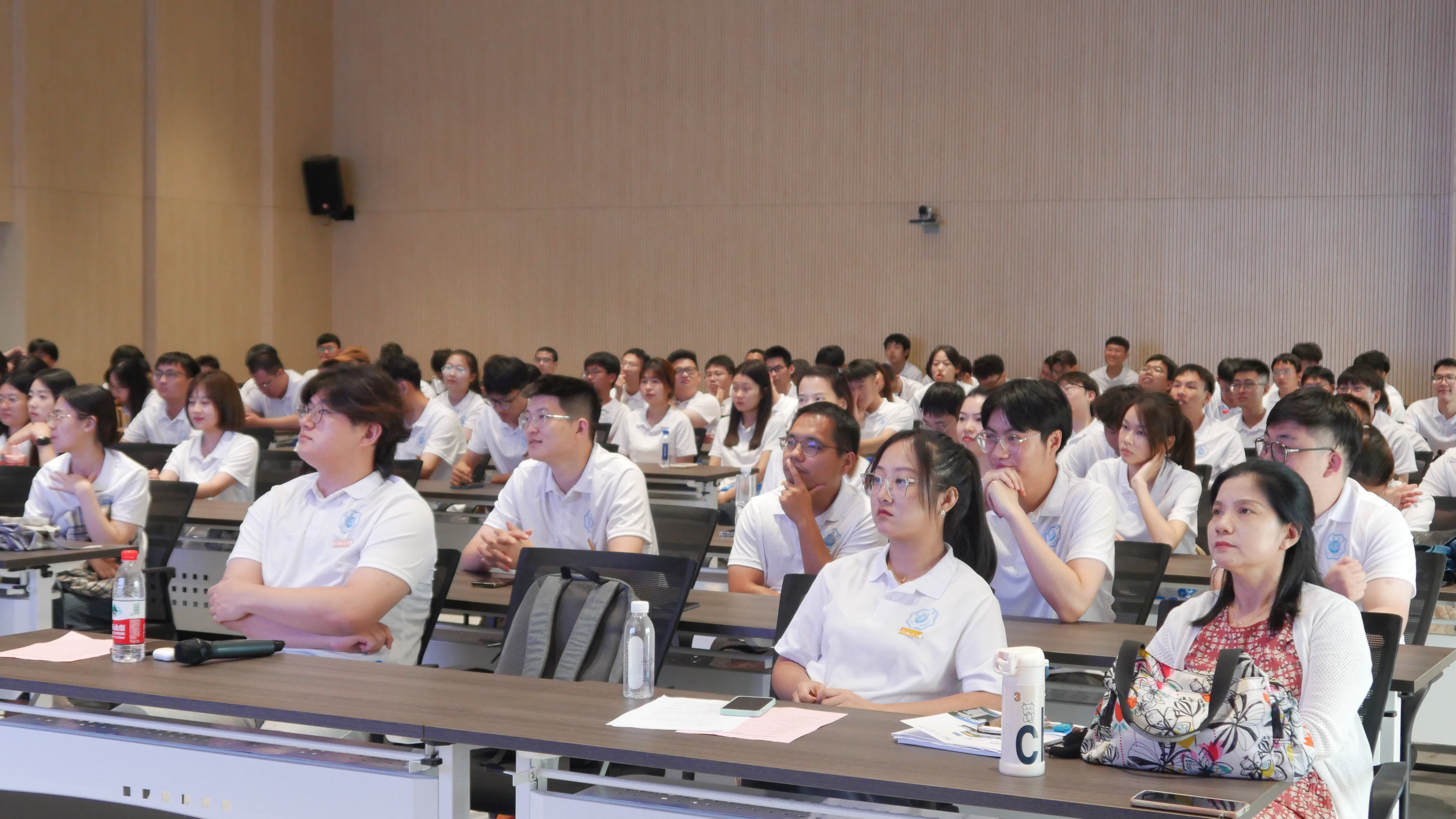 典礼最后,雷冬经理为全体23级研究生新生上了开学第一课。他主要从专业发展历程和应用方向方面向同学们介绍,同时他悉心教授同学们开展科研过程中的方法。最后他寄语同学们愿他们成长为志存高远、脚踏实地、勇攀科技高峰的新时代“水之子”!