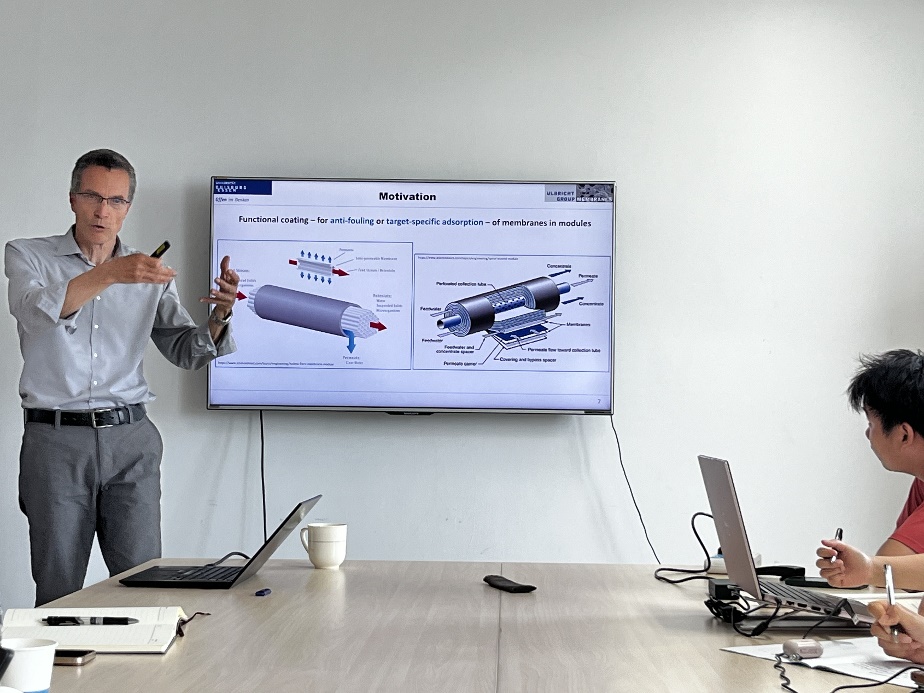 参加交流活动的公司老师和同学们积极参与讨论,Mathias Ulbricht教授一一给与了解答,帮助公司师生对多孔聚合物基复合膜制备与应用中的科学内涵与应用前景形成了更深刻的认识。