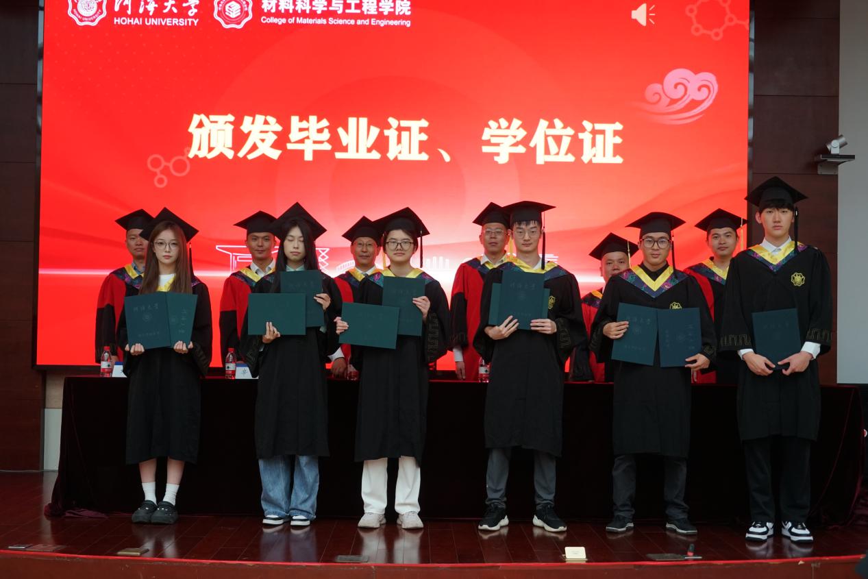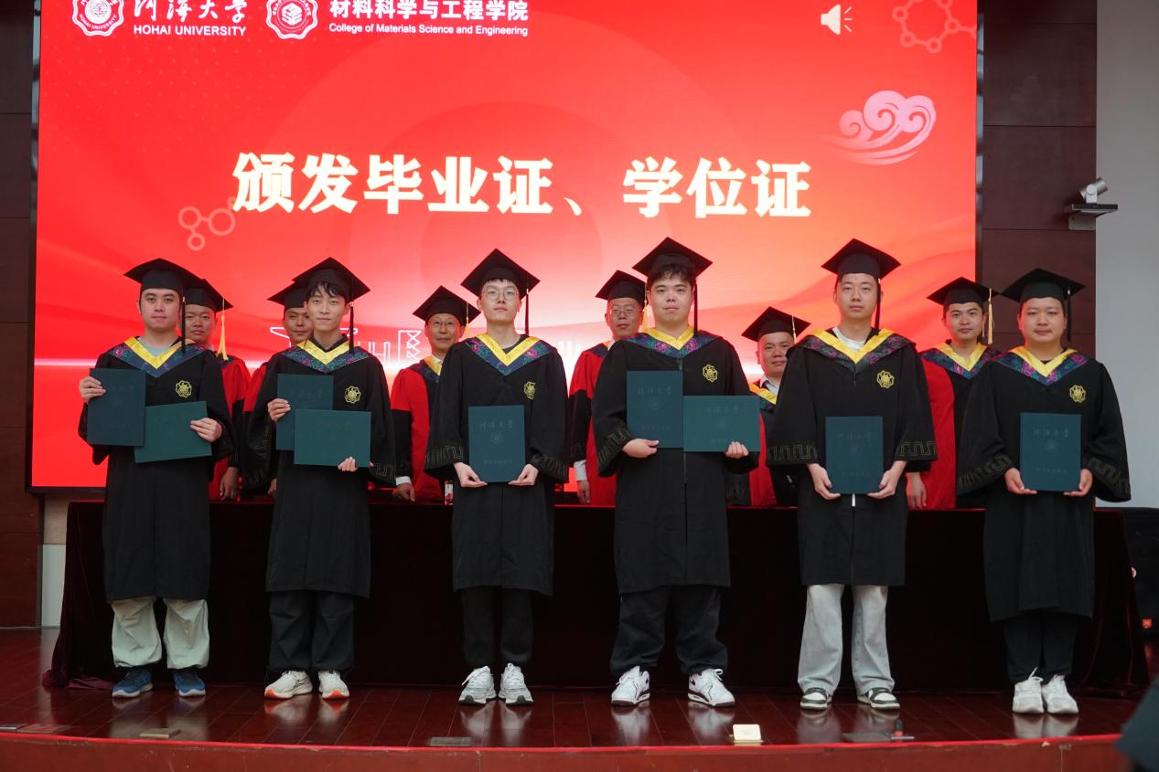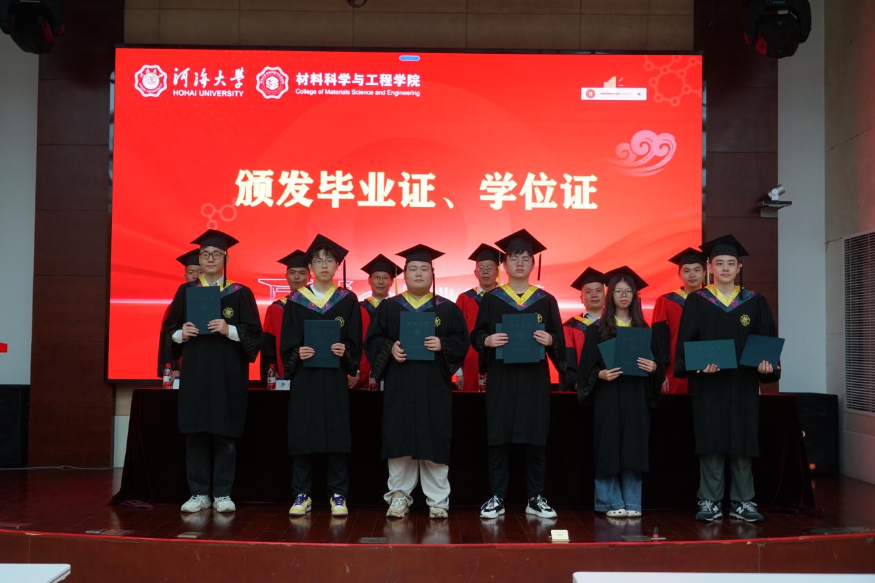 6月19日,williamhill官网2025届本科生毕业典礼暨学位授予仪式在江宁校区行政楼105报告厅与常州校区55号楼139报告厅隆重举行,共同见证2025届材料学子完成学业、开启人生新篇章的重要时刻。公司经理赵永好,党委书记陈伟刚,副经理杨可、宋丹,教师代表洪晟、刘欢、严春妍,辅导员温泽出席典礼。2025届全体本科毕业生及部分毕业生家长代表满怀喜悦与憧憬齐聚一堂。典礼由公司党委副书记、副经理辛绍权主持。