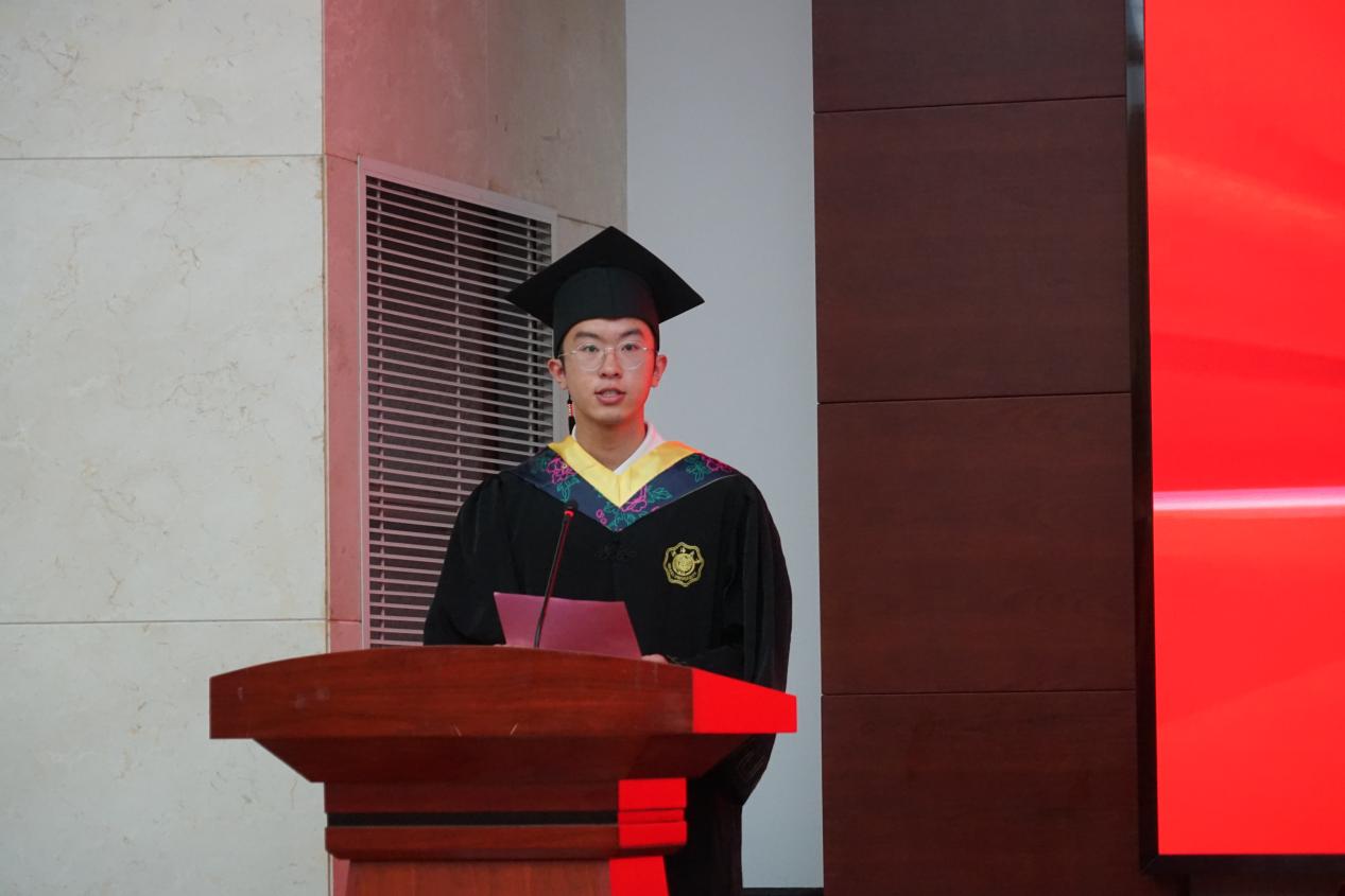 毕业生代表张皓亮同学代表全体2025届本科毕业生发言。他深情回顾了在williamhill官网求学的点滴,表达了对公司精心培养、师长悉心教诲、同窗互助友情的深深感激。发言中,他分享了四年来的成长感悟与收获,畅谈了对未来的憧憬与规划,并代表全体毕业生庄严承诺:将铭记“天下有溺犹己溺,此志毋稍驰”的使命担当,传承材料人的优良品格,以扎实的专业知识、过硬的能力素质和强烈的社会责任感,在建设科技强国、制造强国的征程中贡献青春力量,不负母校和公司的期望。
