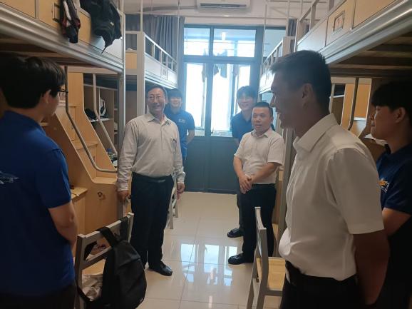 材公司党委书记陈伟刚、经理赵永好、副经理宋丹、副经理杨可、副书记副经理辛绍权等一行深入2025级研究生宿舍,看望刚刚入校的新同学,为他们送去公司的关怀与温暖。